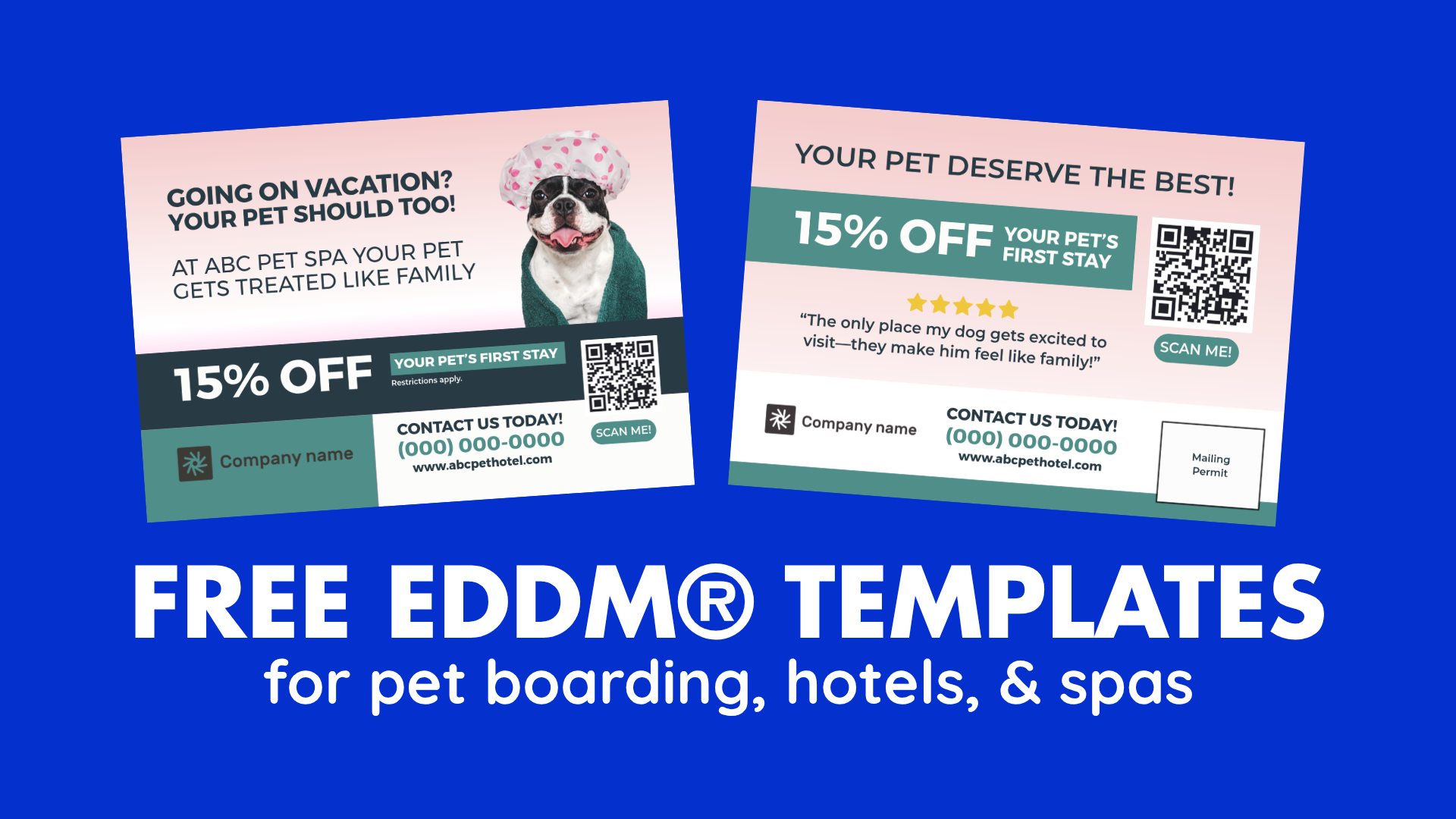 Want a head start? Use our free EDDM postcard templates made specifically for pet boarding businesses. They are: