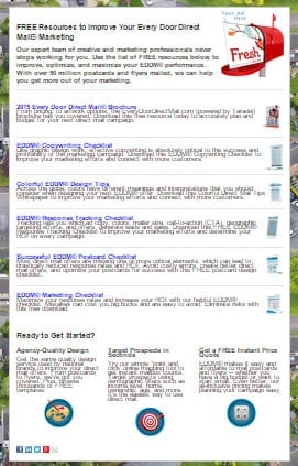 Our new FREE EDDM® Resources page has all of the design, marketing, and response tracking checklists and information required to launch successful campaigns. Even better, they are all available as FREE downloads.