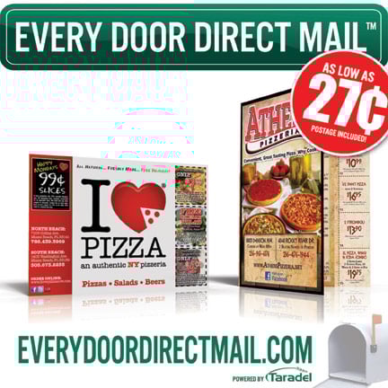 Send pizza direct mail offers to every address in your local market for just 27¢. Nobody makes it easier to design, print, and mail. A NJ-based pizza operator increased sales 47% using this service.