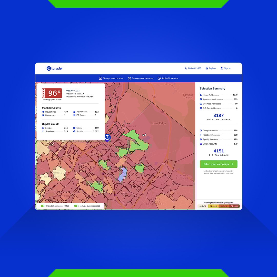 That's where Taradel's new Mapfire app (an easy way to target households with postcards and digital marketing) comes into play.