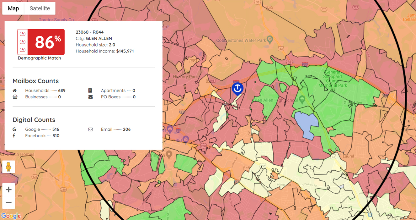 You can use USPS’ EDDM online tool, which is available here, to map ZIP Codes and neighborhoods while filtering your results by age, income, or household size. This data comes from the U.S. Census.