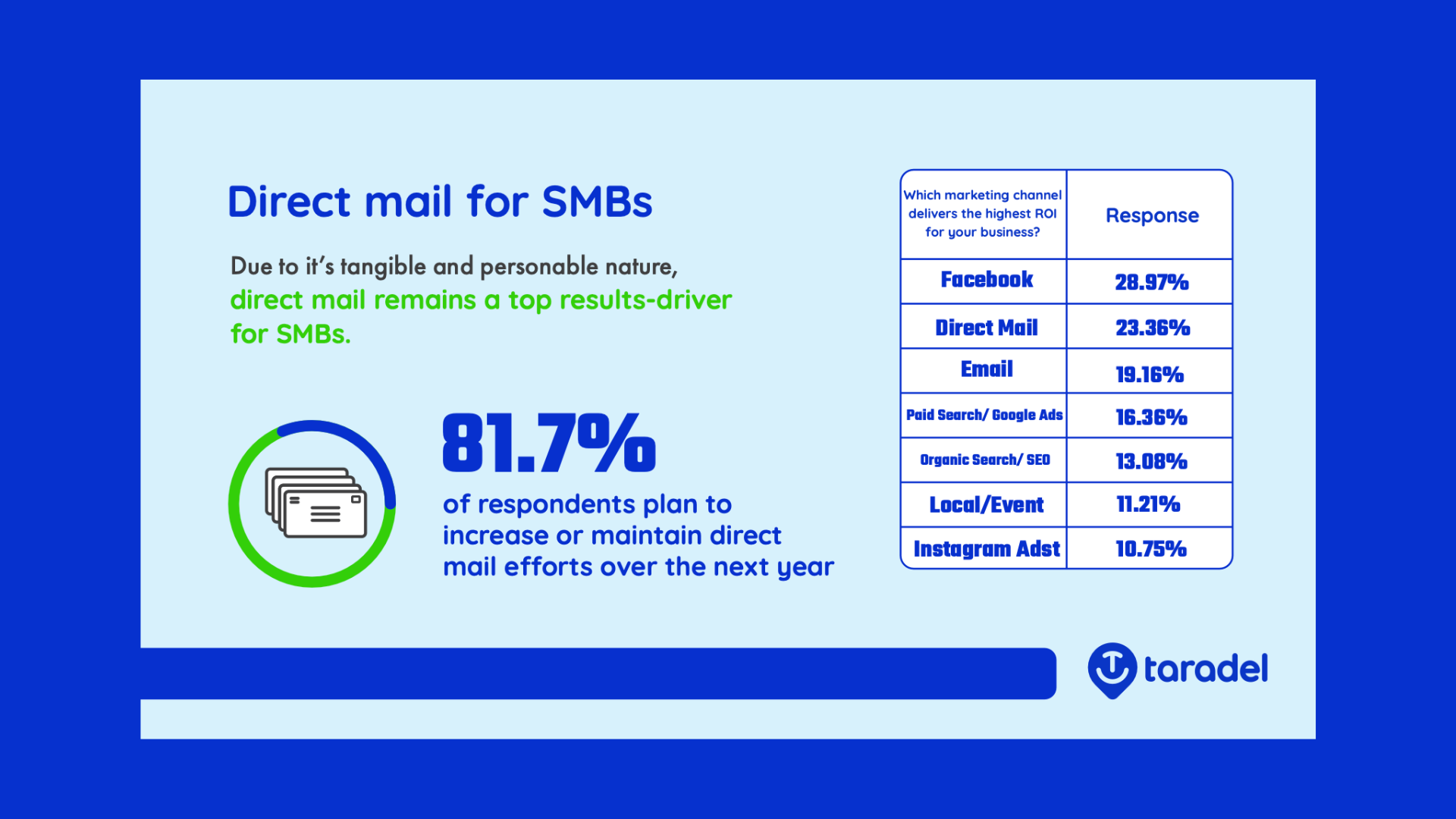 The survey results show that due to its tangible and personable nature, direct mail will continue to remain a top results-driver for SMBs.
